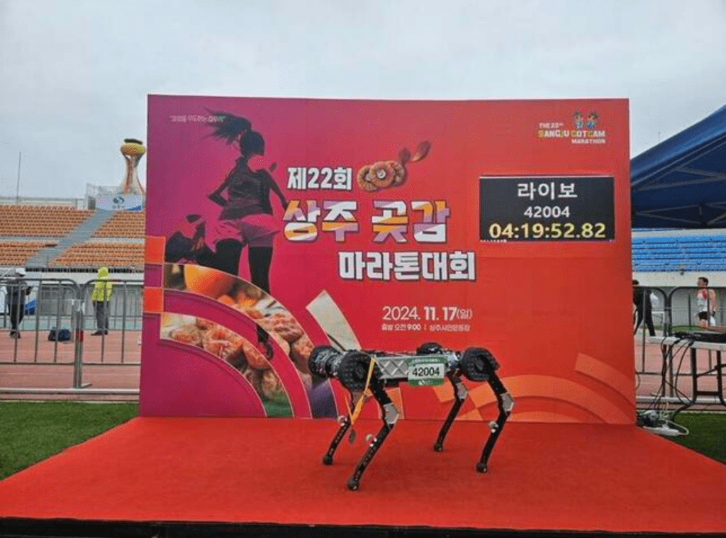 The race was the 22nd Sangju Dried-Persimmon Marathon, which Raibo2 finished in four hours, 19 minutes and 52 seconds. The (human) first place winner finished in two hours, 36 minutes, and 32 seconds.